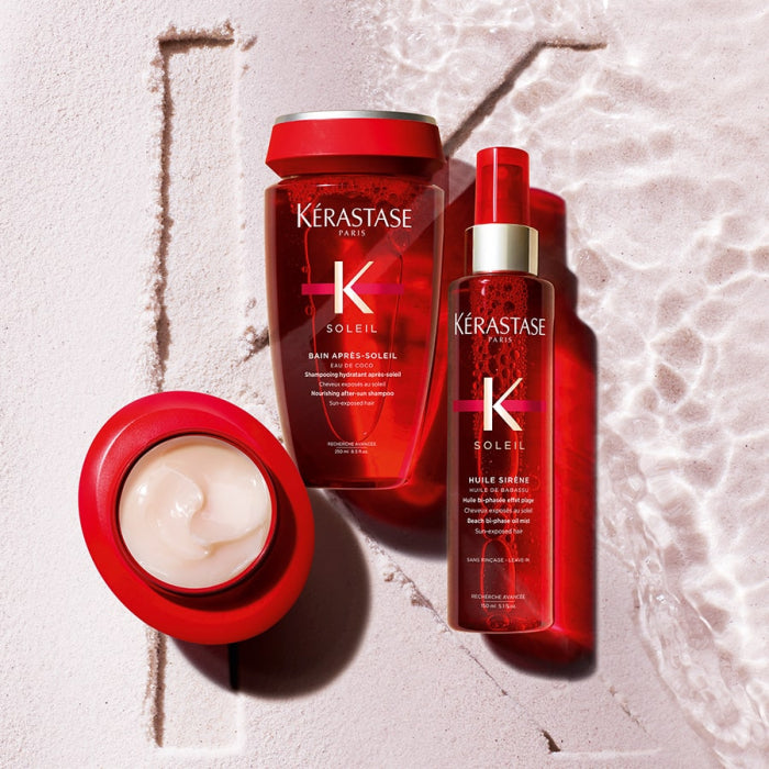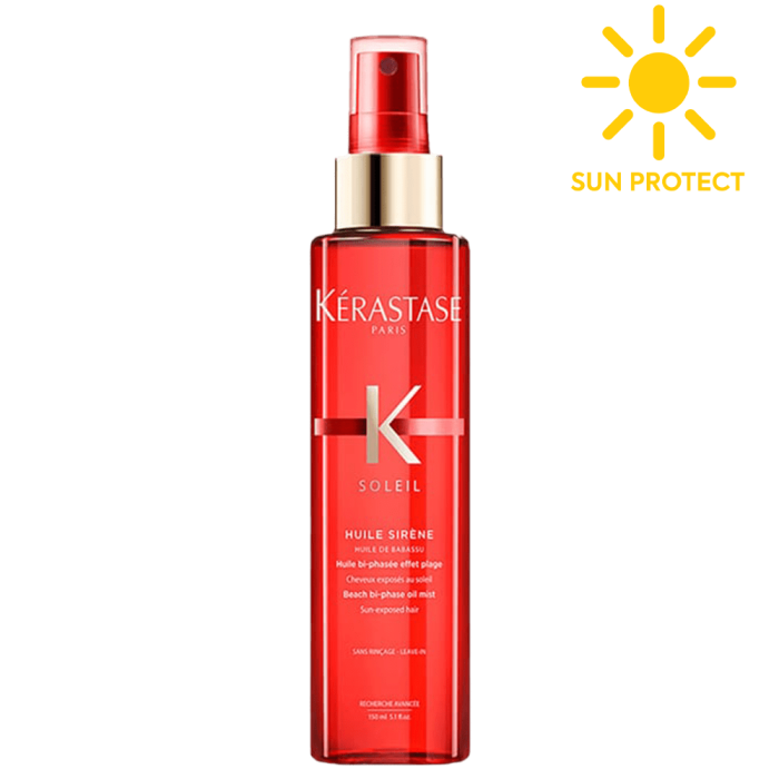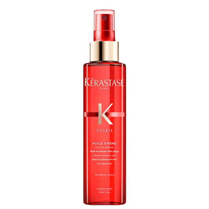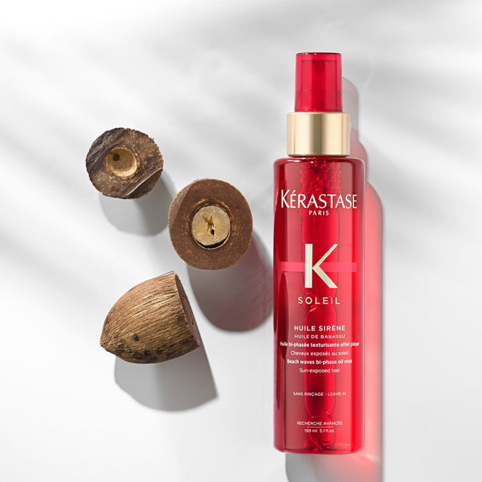 Двуфазната олио-мъгла за плажни вълни от серията Soleil на Kérastase съдържа масло от бабасу и UV филтър. Тази уникална комбинация между защитно олио и солен стайлинг спрей дефинира и текстурира косата за красиви плажни вълни. Двуфазната олио-мъгла за плажни вълни е универсален спрей, който може да се използва както за текстуриране на влажна коса, така и за оформяне на вълните през деня. Aбсорбира се бързо и омекотява косата без да я утежнява и придава блясък. Обогатено с масло от бабасу , мултизащитното олио мигновено омекотява косата и дава текстура. Чувственият аромат на жасмин, съчетан с нотки на тубероза, са в основата на пристрастяващия летен аромат на двуфазната олио-мъгла от серията Soleil. Косата е с блясък, дори и в най-активните дни на лятото.