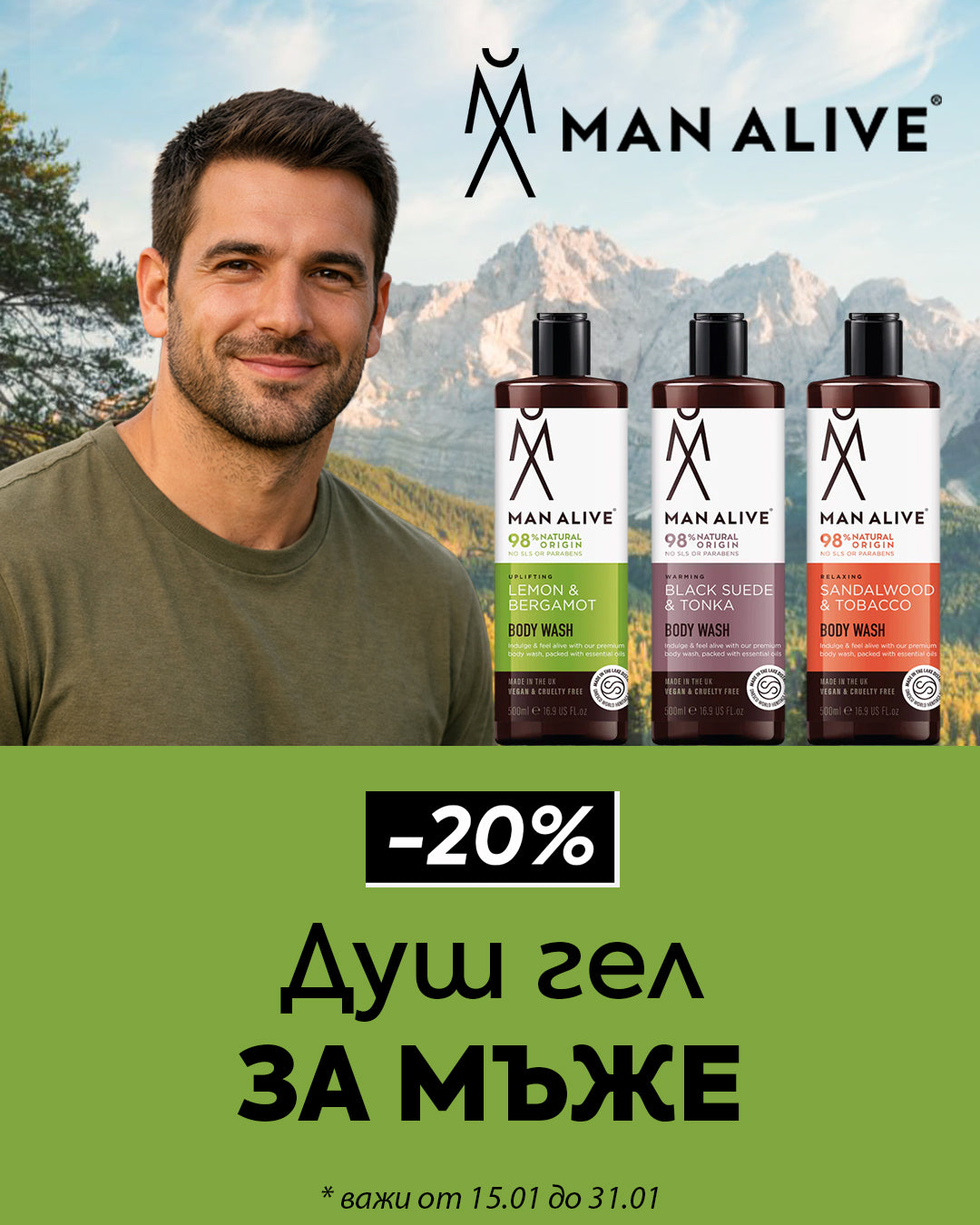 Открийте ароматните мъжки душ гелове с 98% натурална формула, създадени специално за хидратиране и подхранване дори и на най-чувствителната кожа. Man Alive съчетава в себе си силата на природата и неоспоримите качества на етеричните масла. Натуралната формула ще ви накара да се почувствате освежени и заредени.