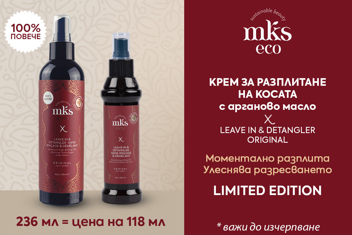 MKS Eco e натурална козметика, която използва подбрани органични съставки, извлечени по естествен начин. Формули с натурални масла и естествени аромати, които постигат безупречни резултати - здрава, гладка, блестяща и защитена коса.