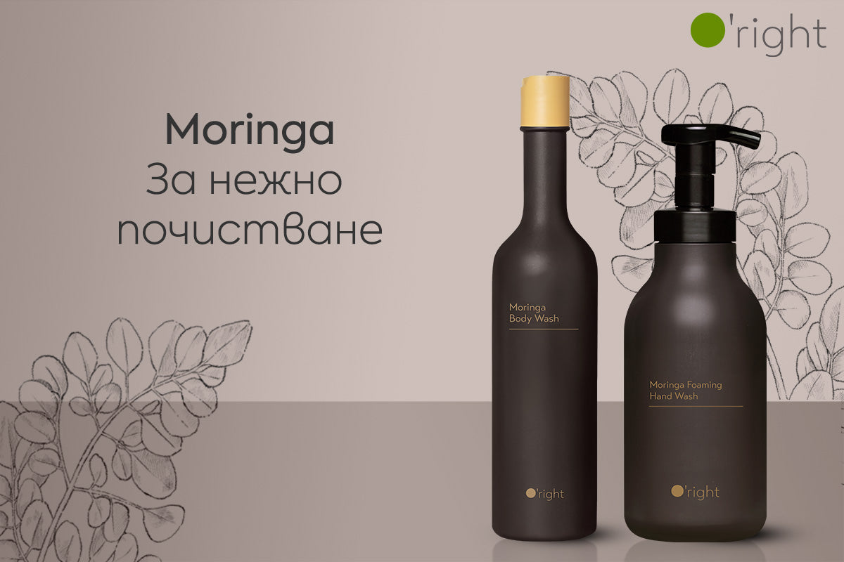 O’right Moringa обгръща в спокойна аура, благодарение на успокояващия дървесен аромат, който се задържа дълго след измиване. Серията продължава мисията на бранда за устойчиви решения с нулев въглероден отпечатък, съчетавайки силата на органичните съставки с отговорността към околната среда.