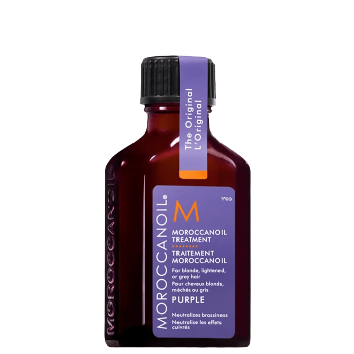 Мароканско арганово масло за руса коса Moroccanoil Purple Treatment възстановява и съживява руси коси, увредени от негативното въздействие на околната среда и боядисванията. Богата на антиоксиданти, витамини и протеини, терапията осигурява подхранване и се усвоява лесно. Не съдържа алкохол. Създадена специално за руса, изрусена коса.