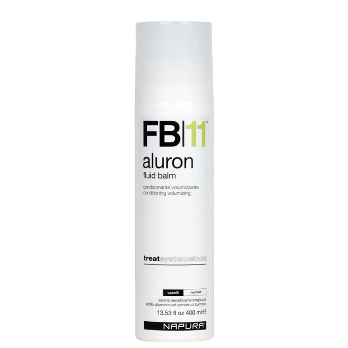 Балсамът-флуид за коса Napura FB11 Aluron Fluid Balm има възстановяващо действие и едновременно с това успява да придаде естествено изглеждащ обем на косата още от корените. За да се постигне този ефект, формулата залага на екстракт от бамбук и аминокиселини от соя. Те действат, като уплътняват всеки косъм още от основата и по този начин го повдигат. Успяват да укрепят кератиновата стуктура и да предотвратят появата на щети и загубата на жизнения и въздушен вид на косата.