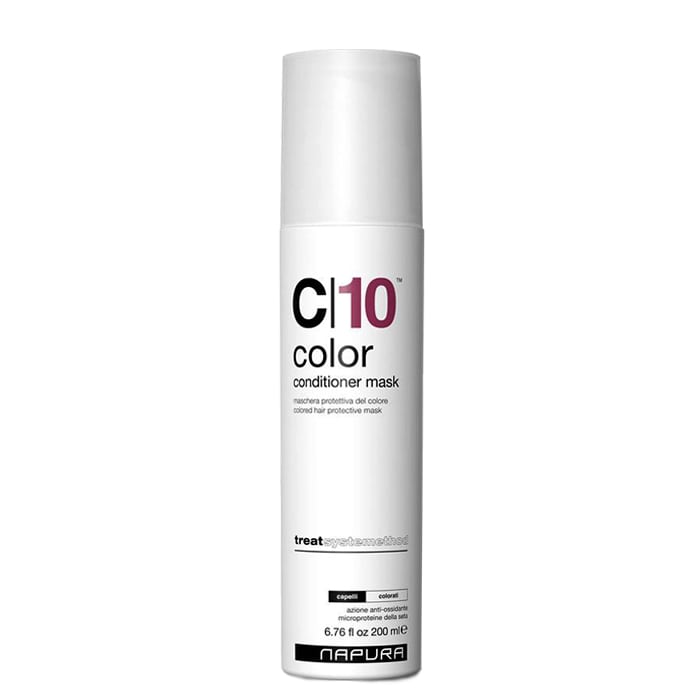 NAPURA C|10 Color е реконструктор за коса, която е станала чувствителна от процесите на боядисване, или за коса, която се заплита и образува възли. Специфичният състав на тази маска подсилва цвета и естествения блясък на косата, защитавайки я от външни влияния. Ценният копринен протеин прониква в косъма и увеличава устойчивостта му, като подобрява гъвкавостта и вътрешната влажност. Специфичният елемент на коприната, добре познат като серицин, подобрява структурата на косъма и по този начин осигурява наситеност на цвета за по-дълъг период от време. Благодарение на тези качества, в комбинация с антиоксидантното действие на екстракта от френско грозде, люспите на скалпа остават затворени и косата изглежда по-мека и блестяща.