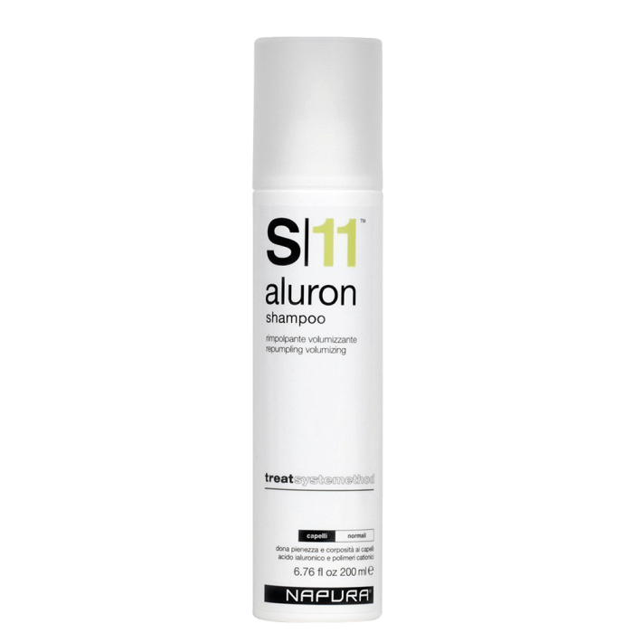 Шампоанът за плътност и обем Napura S11 Aluron Shampoo ви помага да постигнете неотразим обем още по време на самото измиване. Той почиства замърсяванията, които се натрупват върху кичурите и скалпа на ежедневна база, като премахва остатъците от стилизиращи средства, излишния себум, пърхота, ако е наличен такъв и праховите частици, попадащи неминуемо върху косата. Хиалуроновата киселина придава на косата обем, хидратира в дълбочина и запълва щетите по дължините отвътре-навън.