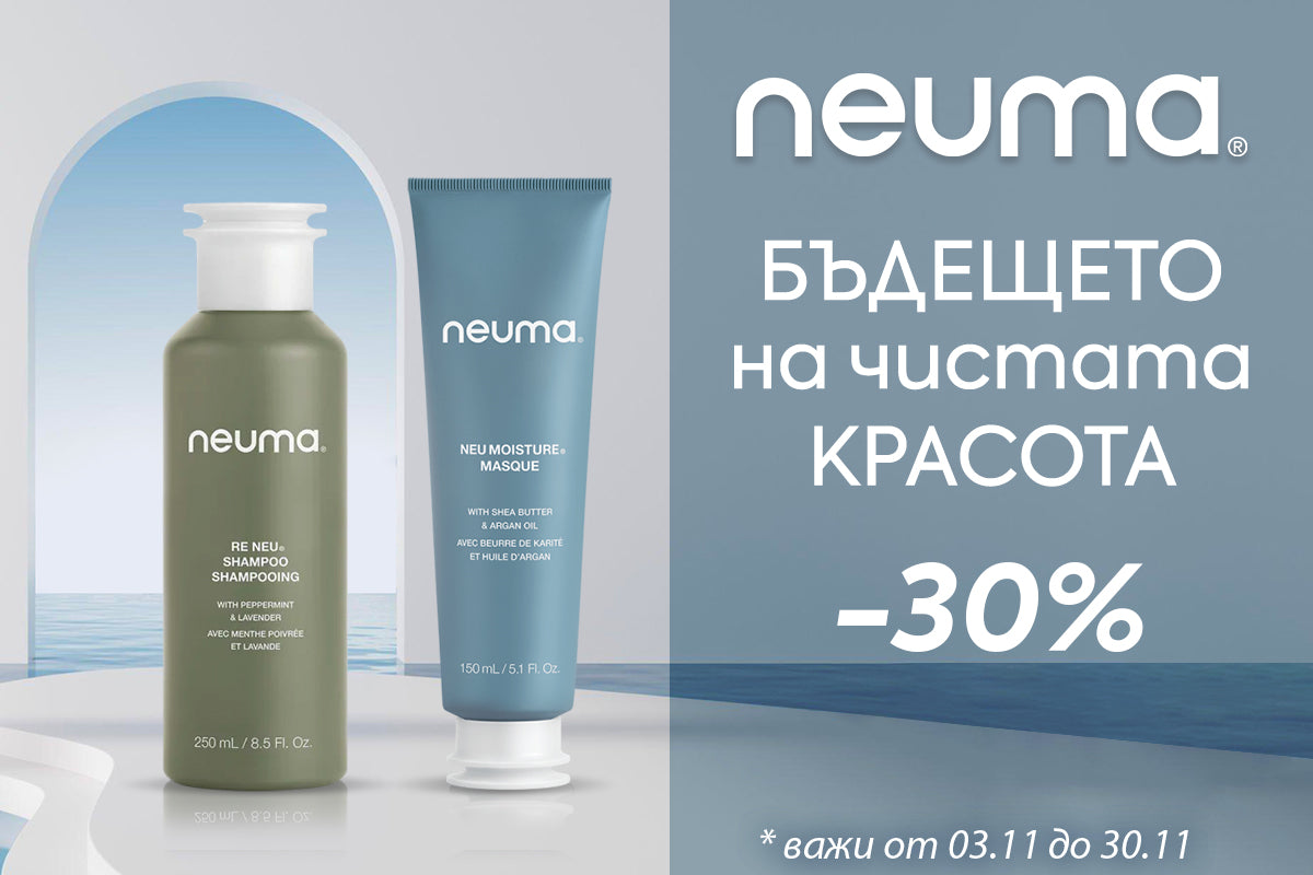 Американска високоефективна козметика, създадена, за да направи косата красива, без това да вреди на здравето или на околната среда. Доказва, че отличното представяне, бързите резултати и грижата за здравето могат да вървят ръка за ръка. Mисията на NEUMA е да остави света по-добър, отколкото го е намерила - не защото е лесно, а защото е правилно. NEUMA е чистата красота на утрешния ден. Такава, която няма какво да крие и вярва в минималистичния подход, при който подчертава уникалността на всеки човек и свежда до минимум въздействието му върху планетата. NEUMA разкрива красотата в най-чистата ѝ форма за доброто на планетата, хората и косата.