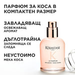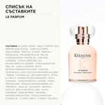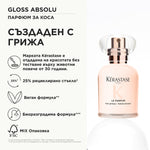 Парфюм за коса, който улавя изключителния аромат на серията Gloss Absolu. Kérastase Gloss Absolu Le Parfum е аромат от висшата мода, създаден от известните парфюмеристи Лоик Бишелие и Фабрис Пелегрин, който ободрява сетивата с неочаквана комбинация от изключително свежи цитруси и луксозен флорален аромат.