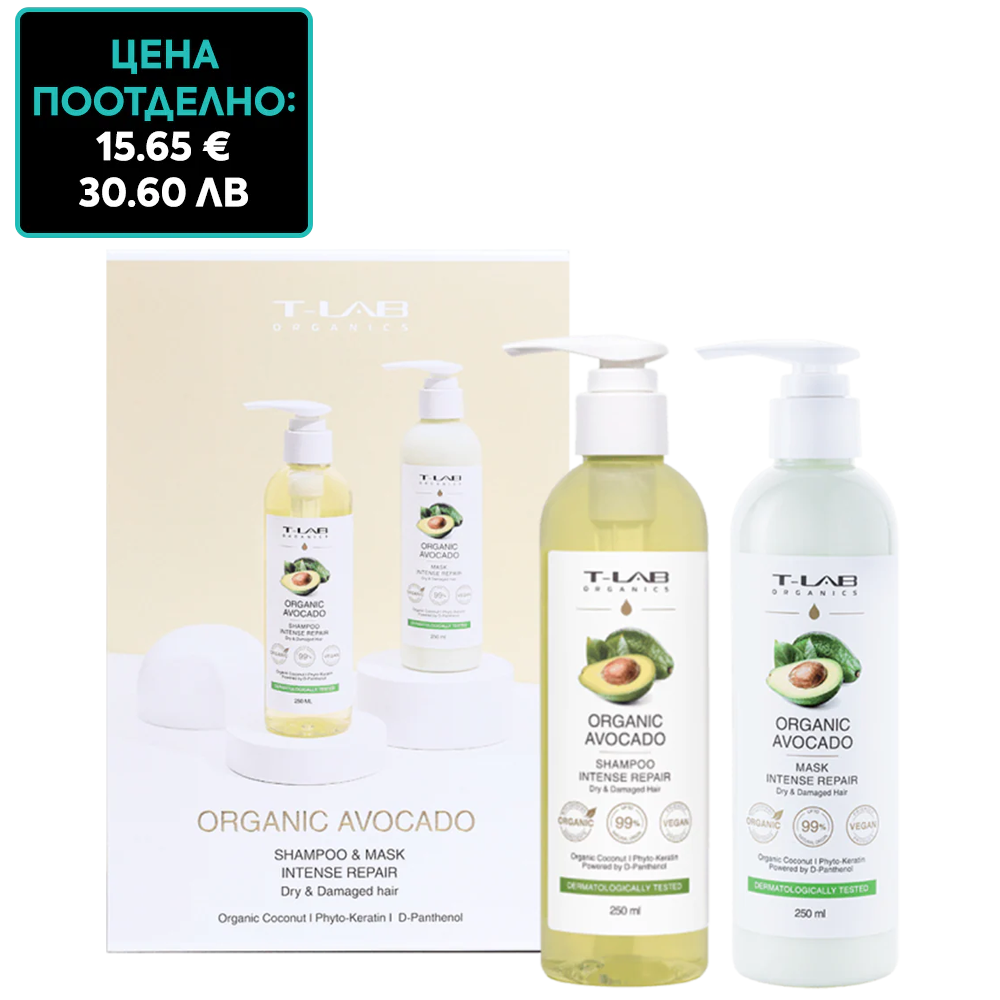 Шампоан с авокадо за интензивно възстановяване T-LAB Organic Avocado Intense Repair Shampoo нежно почиства, укрепва косата и хидратира скалпа, което го прави изключително подходящ за суха и изтощена коса. Със своята формула, обогатена с натурални съставки, шампоанът осигурява надеждна защита от вредните влияния на околната среда – UV лъчи, замърсяване и термообработка. Създава защитен слой около косъма, предпазвайки го от увреждане и подпомагайки неговото възстановяване. Благодарение на антиоксидантните си свойства, шампоанът рехидратира скалпа и косата. В резултат, косата е възстановена, по-здрава и жизнена.