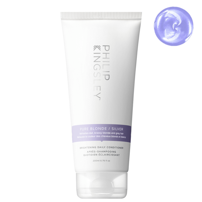 Балсам Philip Kingsley Pure Blonde Silver с виолетов цвят за нежно тониране на русата коса.