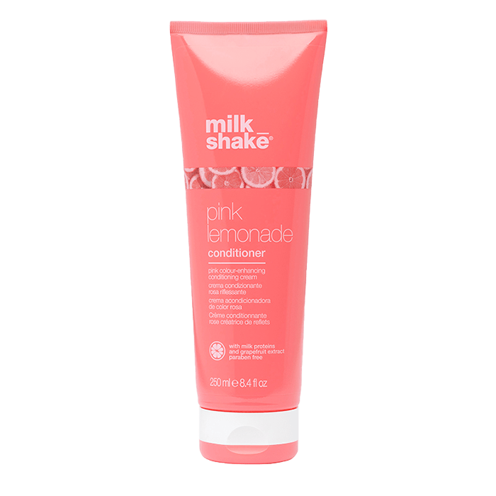Milkshake Pink Lemonade Conditioner е подхранващ балсам за руса или изсветлена коса. Формулиран с розови пигменти, той омекотява косата, като същевременно оставя нежен розов нюанс. Интензивността на цвета може да варира в зависимост от това колко дълго е оставен да подейства и колко често се използва. Съдържа млечни протеини и екстракт от грейпфрут, две изключителни съставки от природата, които имат дълбоко действие върху косата, придавайки розов цвят, без да нарушават красотата и жизнеността на косъма. Подходящ за руса и изсветлена коса.