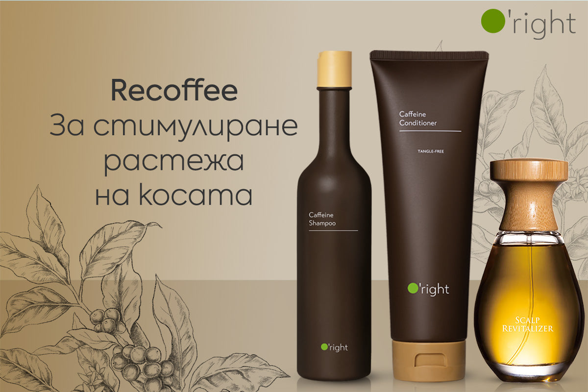 Серията O'right Recoffee е иновация в света на органик козметиката, съчетаваща силата на органичните съставки с отговорността към околната среда. Вдъхновена от идеята за рециклиране и устойчивост, серията използва ектракцията на масло от кафе, за да предложи безопасна грижа за косата и ефективно стимулиране растежа й.