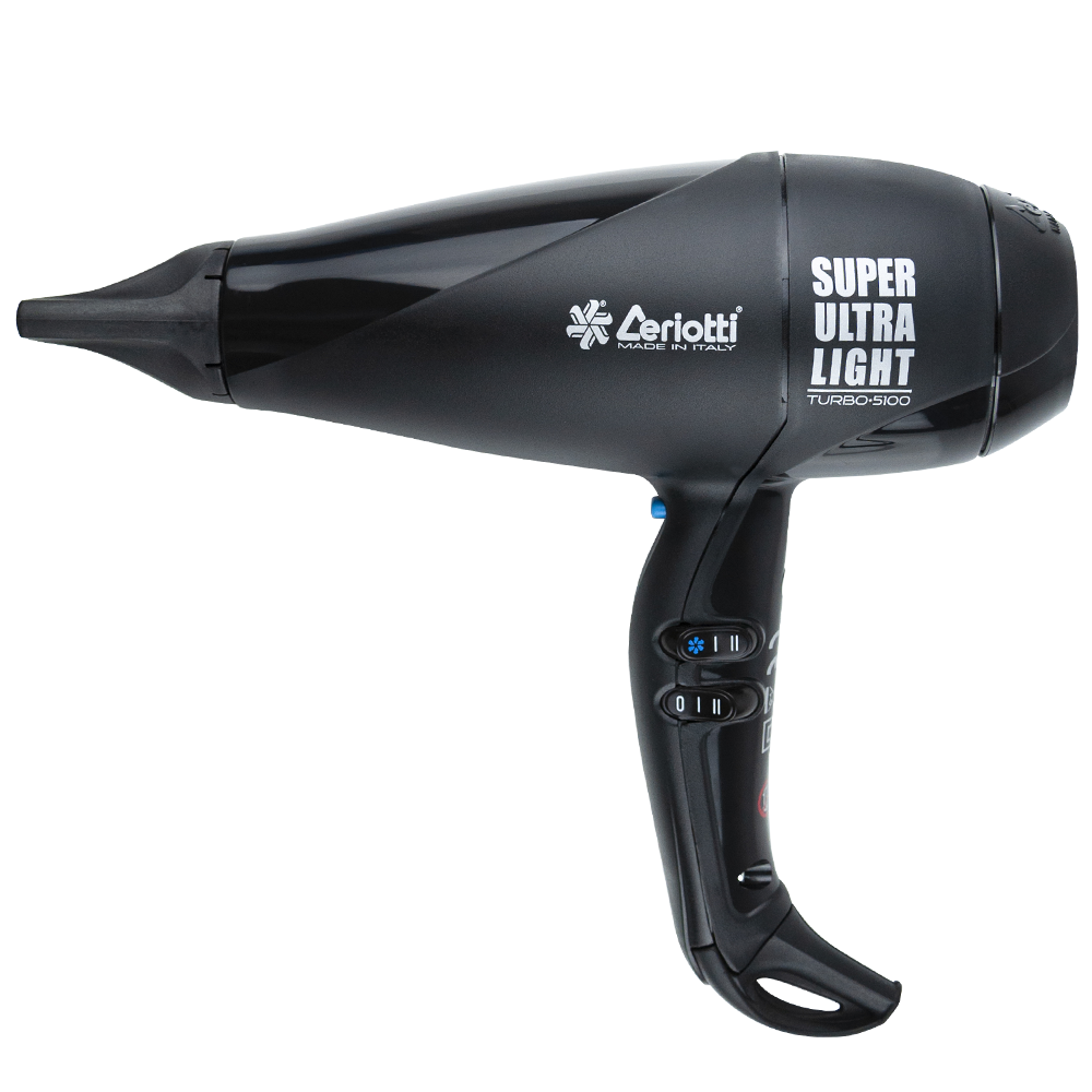 Сешоар Ceriotti Super Ultra Light Turbo 5100 е изключително мощен - 2500W и с ергономичен дизайн, който го прави много по-лек, отколкото изглежда. Изключително бърза и лесна работа, за максимални резултати. Висока температура на работа. Благодарение на системата за защита, двигателят е предпазен и почистването на сешоара е опростено. Сешоарът е изключително лек и тих, благодарение на материалите, от които е изработен. Стандартите на марката за удобства не са пропуснати: студена струя за фиксиране на прическата, подвижна решетка за лесно почистване и по-дълъг живот на уреда. Всичко това за безупречна работа, дори в домашни условия.