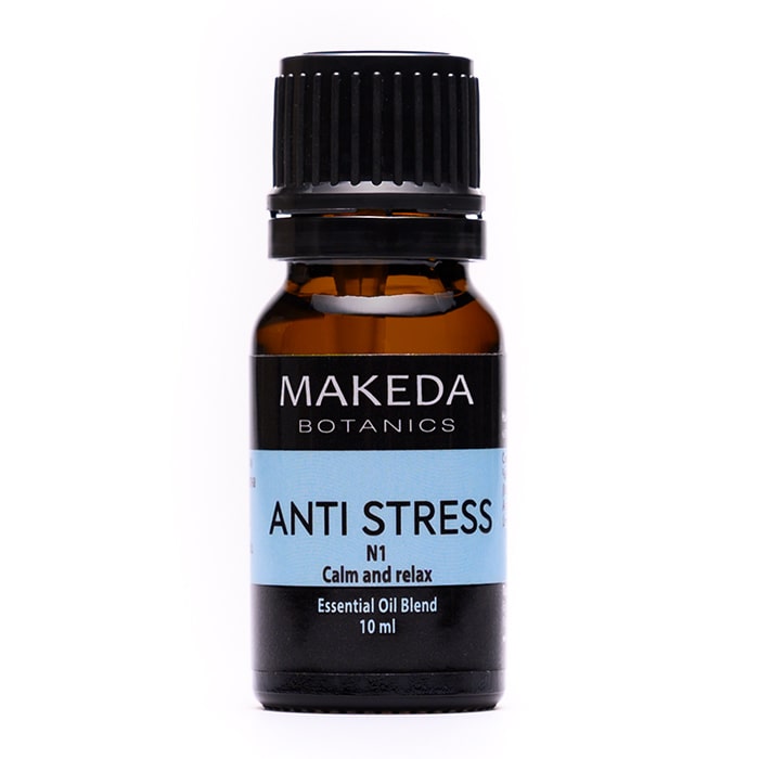 Композицията етерични масла MAKEDA Botanics Anti stress N1 действа отпускащо и успокояващо при тревожни мисли и депресивни състояния. Има седативен ефект върху нервната система и релаксира неспокойния ум. Облекчава състоянията на стрес и безпокойство, улеснява отпускането и заспиването.
