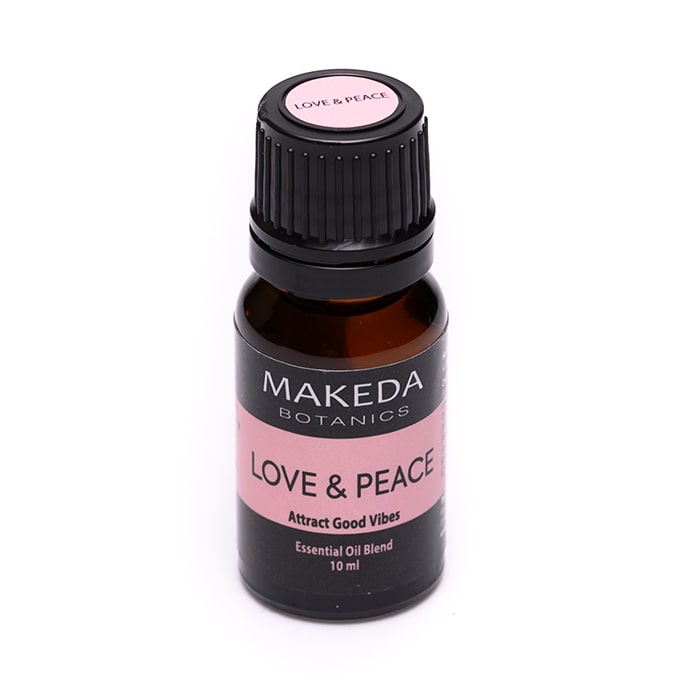 MAKEDA Botanics Love & Peace (Attract Good Vibes) е балансиращ бленд от етерични масла от Сладък портокал, Лавандула, Иланг иланг, Сандалово дърво, Пачули, Роза (Rosa Damascena) и Нероли. Релаксира тялото и мисълта, за да осигури вътрешен мир и да изпълни душата с любов. Комбинацията на етеричните масла създава усещане за обич, нежност, топлина, комфорт, лекота и баланс. Укрепва вътрешния мир и дава усещане за комфорт, хармония и красота.