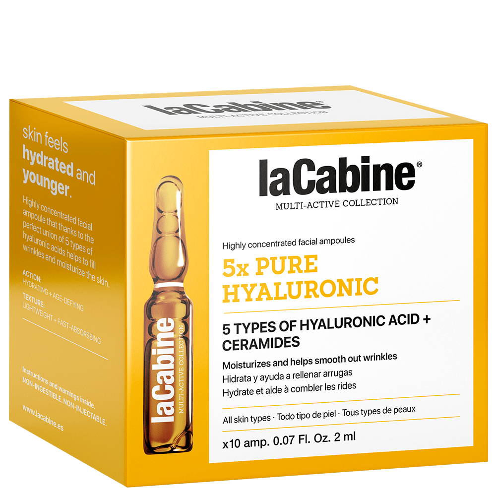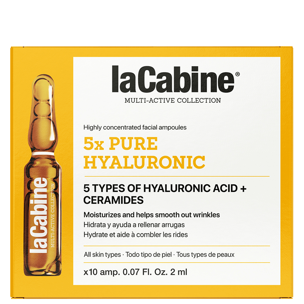 Ампули 5xPure Hyaluronic перфектно съчетават 5-те вида хиалуронова киселина, което позволява по-голяма ефективност и дълготраен ефект, като действат на различни нива кожата. Интензивно хидратират и реструктурират епидермиса, придавайки плътност и еластичност. Възстановяват загубената влага и помагат за намаляване на появата на фини линии и бръчки. Стимулират обновяването на клетките и намаляват увреждането на кожата от външната среда. Кожата изглежда и се чувства по-мека, по-хидратирана, по-плътна и по-млада.