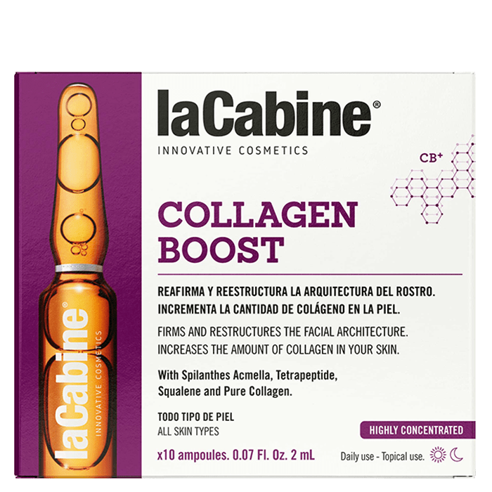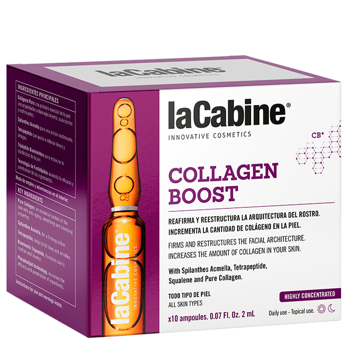 Ампули Collagen Boost възвръщат изгубената с времето стегнатост, като заздравяват колагеновите влакна. Увеличават синтеза на колаген, като същевременно го предпазват от разграждане. Така подобряват плътността и текстурата на кожата. Бръчките са намалени, а лицето видимо по-гладко и подмладено.