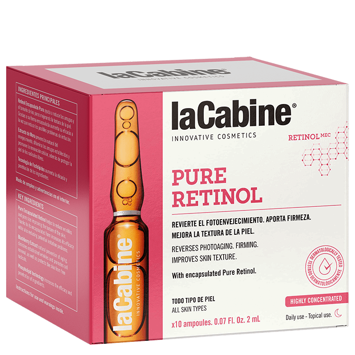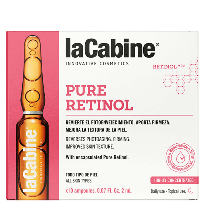 Pure Retinol са висококонцентрирани ампули за лице с интензивен регенериращ и анти-ейдж ефект. Още с първото нанасяне възвръщат младостта на повяхналата кожа, подобрявайки нейната текстура. Изглаждат бръчките, изравняват тена и заличават несъвършенствата. Кожата е по-плътна, стегната и здрава. Ампули Pure Retinol съдържат 0,14% чист ретинол.