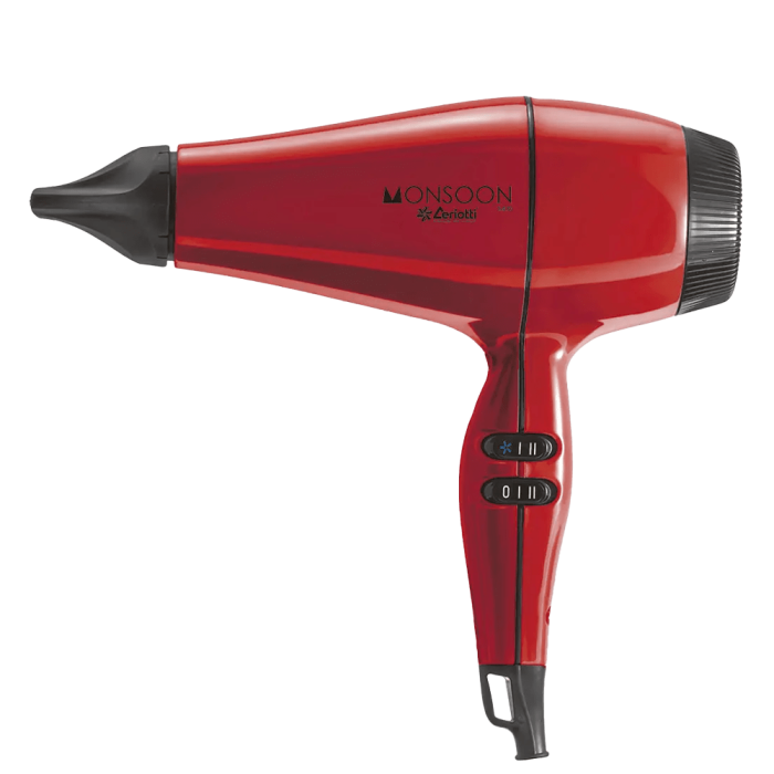 Ceriotti Monsoon e бутиков сешоар проектиран с мощност 2000W и с ергономичен дизайн, който го прави много лек и удобен. Изключително бързо и лесно изсушаване за максимални резултати у дома. Висока температура на работа от 135°C. Благодарение на системата за защита Life Tech, двигателят е защитен и почистването на сешоара е опростено. Нанокерамичното нагряване позволява равномерно разпределение на горещия въздух, създавайки йонизиращ ефект, като предпазва косата от увреждане и съкращава времето за изсушаване.