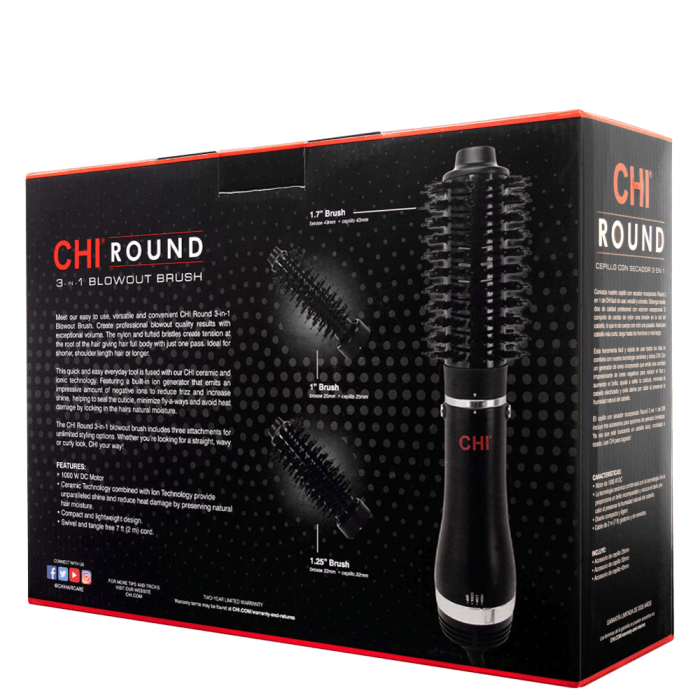 CHI ROUND 3-in-1 BLOWOUT BRUSH включва три сменяеми кръгли четки, които предлагат неограничени възможности за стилизиране: