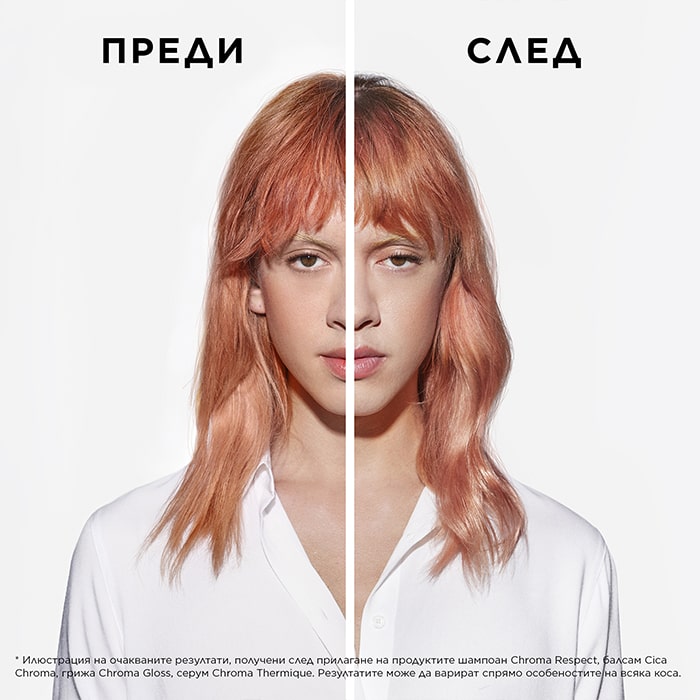 ***Инструментален тест: шампоан за плътна коса Chroma Respect + изглаждаща грижа за блясък Chroma Gloss + маска Chroma Filler.