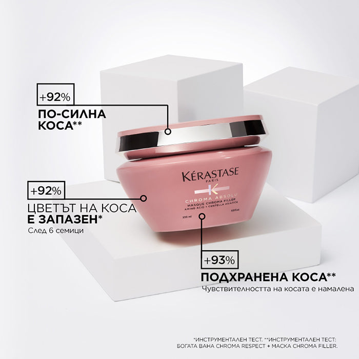 **Инструментален тест: шампоан за плътна коса Chroma Respect + маска Chroma Filler.