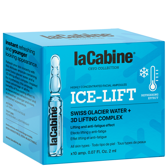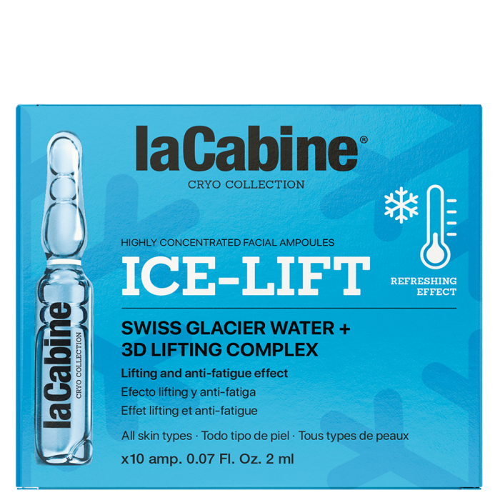 Ампули Ice-Lift стимулират клетъчната регенерация, хидратират жадната кожа и възвръщат нейната жизненост и блясък. Подпомагат възстановяването, подхранват и видимо намаляват бръчките. Поддържат кожната бариера здрава, като предпазват от появата на сухота и защитават от замърсяване от околоната среда.