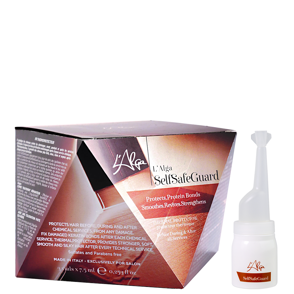 Като възстановяваща грижа: Измийте косата с шампоан L’Alga. Добавете една ампула 7.5 мл SelfSafeGuard към обичайно използваното количество балсам или маска L’Alga. Разнесете по цялата дължина и престойте около 10-15 минути. Изплакнете обилно с вода.