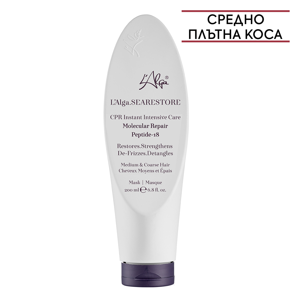 Маска SEARESTORE незабавно и интензивно възстановява косата на молекулярно ниво. Подсилва увредените зони на косъма и възвръща техните здравина и естествено движение. Осигурява ударни нива на хидратация, които се запазват за дълго. Изглажда стърчащите краища и предпазва косата от бухване при влажно време. Разплита дължините още под душа и максимално улеснява оформянето на прическата. Усъвършенстваната формула от последно поколение с пептид 18 и революционния комплекс AlgaNord 5 ™, в комбинация с хиалуронова киселина, сусамов протеин и 9 специални подхранващи агента, осигурява незабавно интензивно възстановяване на косата до най-дълбоките слоеве на косъма. Активира наново изграждането на вече счупените кератинови връзки, като по този начин драстично подобрява здравината, блясъка и мекотата на косата. Защитава цвета на боядисаната коса от избледняване. Изключително подходяща за екстремно увредена и/или склонна към фриз коса.