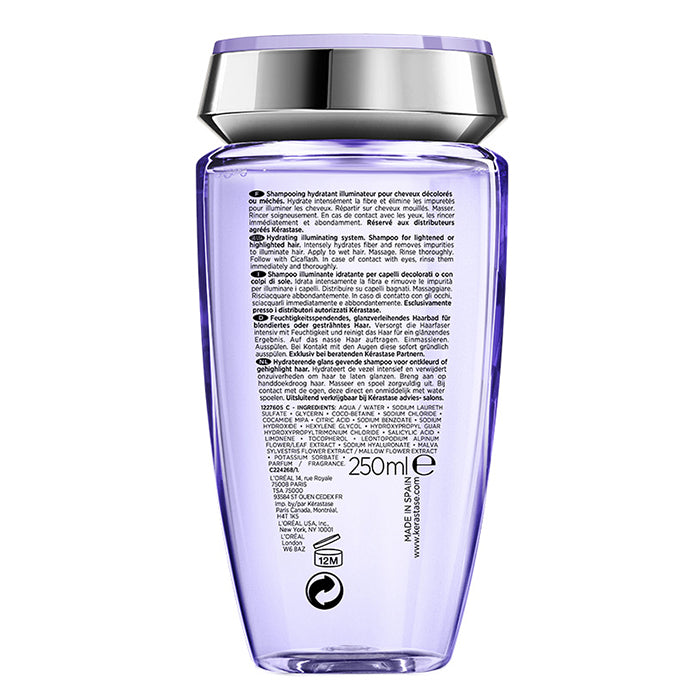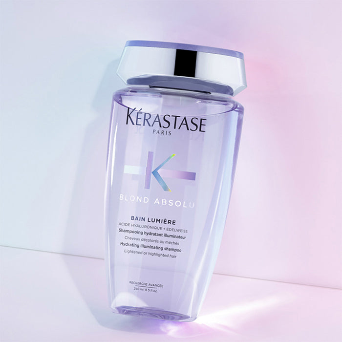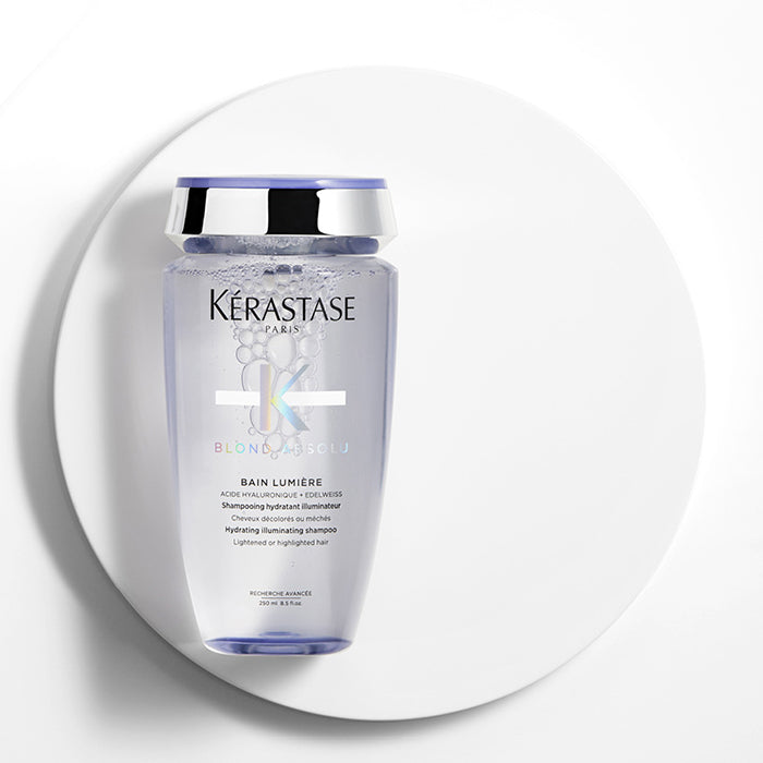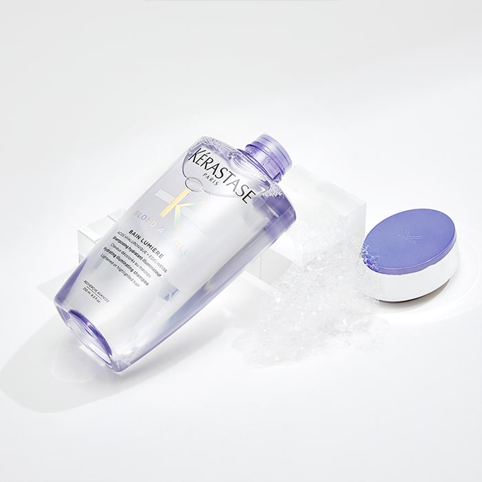 Озаряващ шампоан Kérastase Bain Lumeire хидратира в дълбочина изтощената руса коса. Нежно почиства замърсяванията и оставя косъма равномерно изгладен от корена до върха. Подчертава и озарява естествения блясък на русата коса, оставяйки я лека, подвижна и жизнена.
