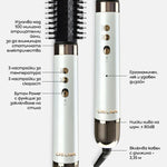 - 5 приставки: 2 ролки 1,25“ за къдрици и вълни, 2 кръгли четки за обем и концентратор за изсушаване, оформяне и изглаждане