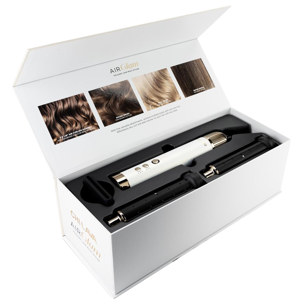 CHI LAVA AirGlam Multi-Styler е незаменим уред "всичко в едно", който оформя косата с лекота. Ултралекият и елегантен дизайн, както и лесната смяна на приставките позволяват бързо оформяне, без усилие.
