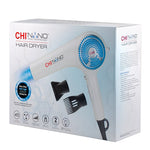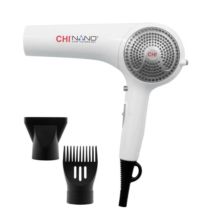 Нано сешоарът CHI Nano Ionic Technology Hair Dryer предоставя най-съвременна технология за бързо и безопасно изсушаване. Отличава се с лек, ергономичен дизайн и мощен керамичен мотор за безупречно оформяне. Керамично-йонната технология изтегля влагата от въздуха и разпада водните капки на по-малки частици, които се абсорбират дълбоко в косъма и предпазват от топлинно увреждане. Технологията използва отрицателно заредени йони, които елиминират наелектризирането, подобряват състоянието на косата и изглаждат кутикула на косъма. В резултат косата е здрава, гладка и с повече блясък.