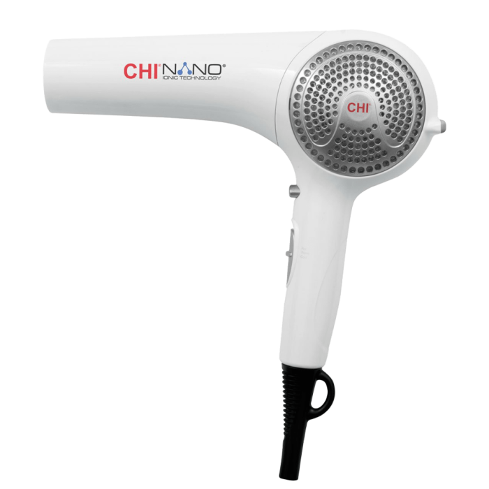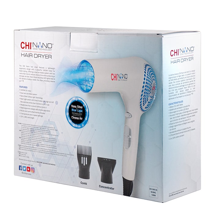Традиционните сешоари излъчват положително, вместо отрицателно заредени йони. Времето за сушене при тях е по-дълго и косата е изложена на топлинно увреждане повече от необходимото. Освен това отварят кутикула на косъма и правят косата по-хвърчаща и суха. CHI Nano Ionic Technology Hair Dryer осигурява бързо изсушаване, като същевременно предпазва косата от увреждане. Изглажда кутикула на косъма, елиминира фриз ефекта и осигурява повече блясък.