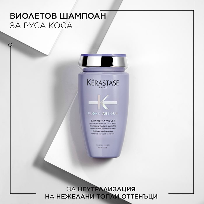 Шампоанът Kérastase Bain Ultra Violet моментално неутрализира нежеланите топли нюанси на русата коса. Възстановява блясъка и мекотата, като увеличава яркостта на цвета. Предпазва косъма от агресорите на външната среда.
