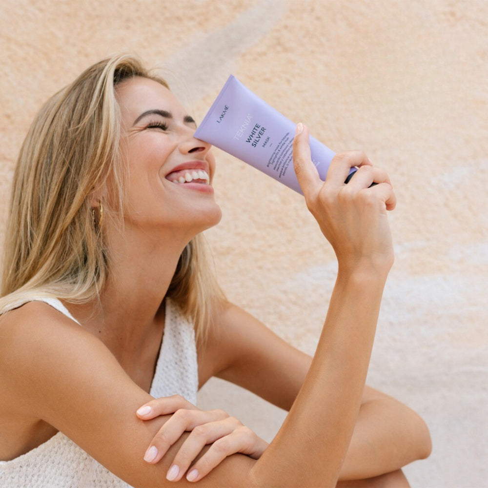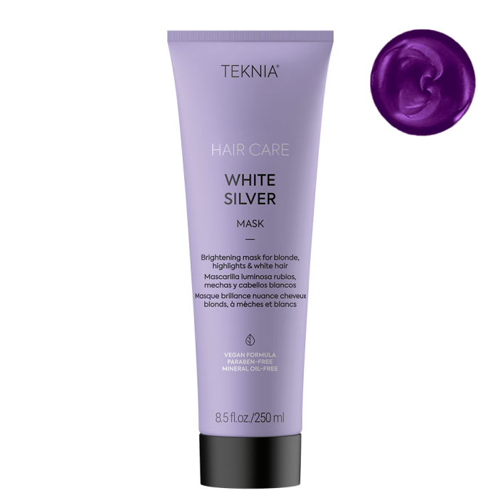 Озаряваща маска за руса коса LAKME TEKNIA White Silver Mask възстановява и защитава всички видове руса коса. Съдържа серамиди, които омекотяват косата и възвръщат естествения ѝ блясък. Има успокояващо и хидратиращо действие. Неутрализира нежеланите жълти оттенъци.