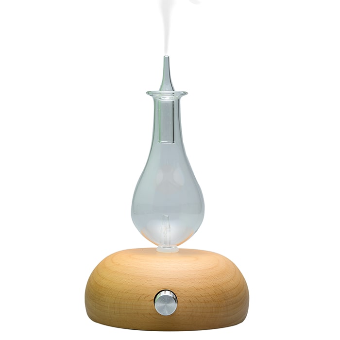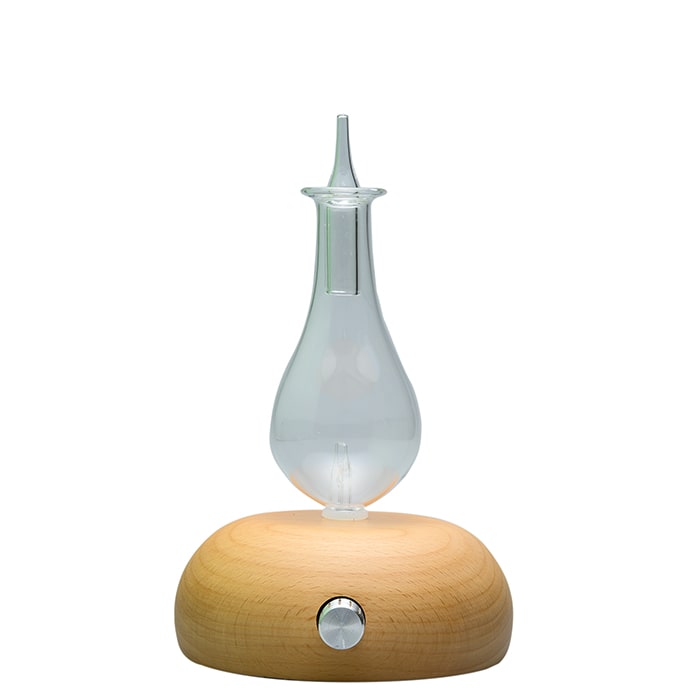 Дифузер (Nebulizer) за ароматерапия с етерични масла без добавяне на вода. Изработен е от естествено дърво и висококачествено стъкло. Вместимостта на стъклената гилза е 10 мл. Препоръчва се за площ от 30 до 120 кв.м. в зависимост от силата на регулиране.