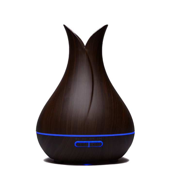 Дифузерът MAKEDA Botanics TULIP /Dark/ e електрически уред за ароматерапия. Използва се с етерично масло и вода, като освобождава терапевтичните качества на маслото и овлажнява въздуха.
