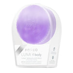 LUNA™ 4 Body е уред за дълбоко почистване и масаж на кожата на тялото. Предназначен за използване под душа, уредът работи с Т – звукови пулсации, които ефективно премахват замърсяванията и отпушват порите. Притежава кадифено меки силиконови косъмчета, които почистват в дълбочина, омекотяват и изглаждат кожата. LUNA™ 4 Body доказано премахва 99% от замърсяванията, мъртвите кожни клетки и прекомерното омазняване. Изработен е от медицински силикон, който е устойчив на бактерии и е 35 пъти по-хигиеничен от четките с найлонови косъмчета. Т – звуковите пулсации осигуряват нежен масаж, който подобрява външния вид на кожата и намалява целулита, като помага за разпределянето на мастните натрупвания. LUNA™ 4 Body подобрява микроциркулацията и по този начин стимулира производството на колаген.