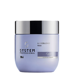 Регенериращата маска System Professional LuxeBlond Mask възстановява косъма в дълбочина. Мигновено неутрализира медните и жълти тонове, като осигурява перфектния студен, рус цвят. Предназначена за увредена, крехка и тънка руса или изрусена коса. Подходяща за обезцветена и химически третирана коса.