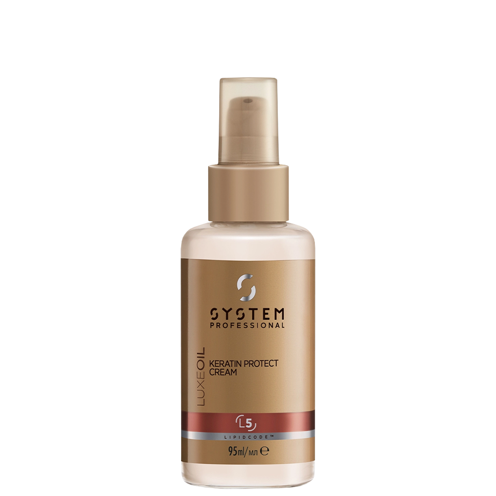 System Professional Diamond LuxeOil Keratin Protect Cream е специално създаден да предпазва косата от механични увреждания. Осигурява дълготрайна гладкост и силен блясък. Съдържа натурално масло от ший. Още от първото нанасяне видимо намалява стегнатостта. С LipidCode™ комплекс. Подходящ за всички типове коса, като осигурява незабавна защита и ефект против стегнатост.