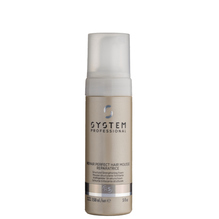 Косата е до 10 пъти по-податлива на увреждане, когато е мокра. При излагане на нагряване ѝ е необходима защита от топлина и механично увреждане. System Professional Repair Perfect Hair Mousse придава обем на косата и подобрява цялостната ѝ структура. Пяната без отмиване заздравява фибрата на косъма в дълбочина. Хидролизираният кератин и аминокиселините проникват в порьозните зони и реконструират увредената област.
