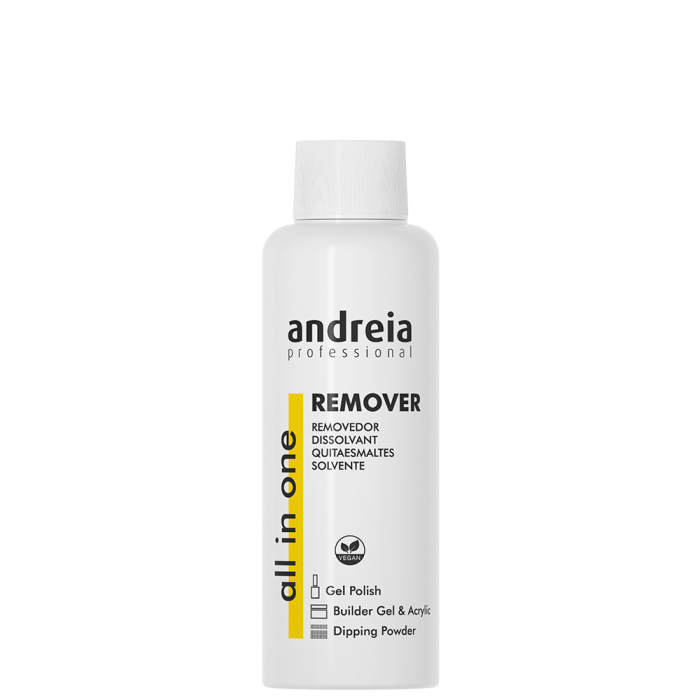 All in One Remover е течност предназначена за лесно премахване на гел лак, изграждащ гел, акрил, дипинг пудра. Неговото мултифункционално действие успешно отстранява всички видове материал за направата, изграждането и моделирането на маникюра.
