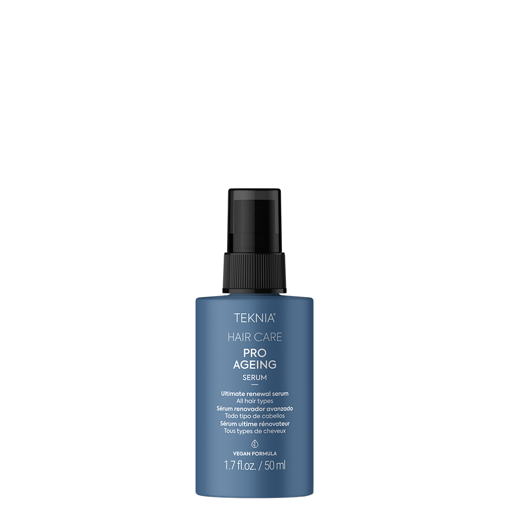 TEKNIA Pro-Ageing следва Longevity философия за осъзнат и холистичен подход към стареенето. Допринася за клетъчната регенерация, забавя износването и стареенето на косъма и фоликулите с доказани резултати. Поддържа високо качество на жизнения цикъл, баланс и оптимално състояние на косата във всеки етап от живота. Работи там, където стареенето започва – в клетките, фоликулите и структурата на космения фибър.