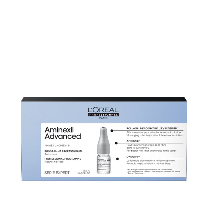 Серията Expert Aminexil Advanced от L'Oréal Professionnel е  двойно действаща програма против изтъняване на косата с Aminexil и Omega-6 комплекс. Omega 6 (по-известен като витамин F) е богат подхранващ комплекс, който се превръща в серамиди (естествена съставка на косата) и действа върху корените, за да стимулира растежа. Aminexil спомага за поддържане на гъвкавостта на космените фоликули и подсилва фибрите на косъма, за по-здраво прикрепяне към скалпа.
