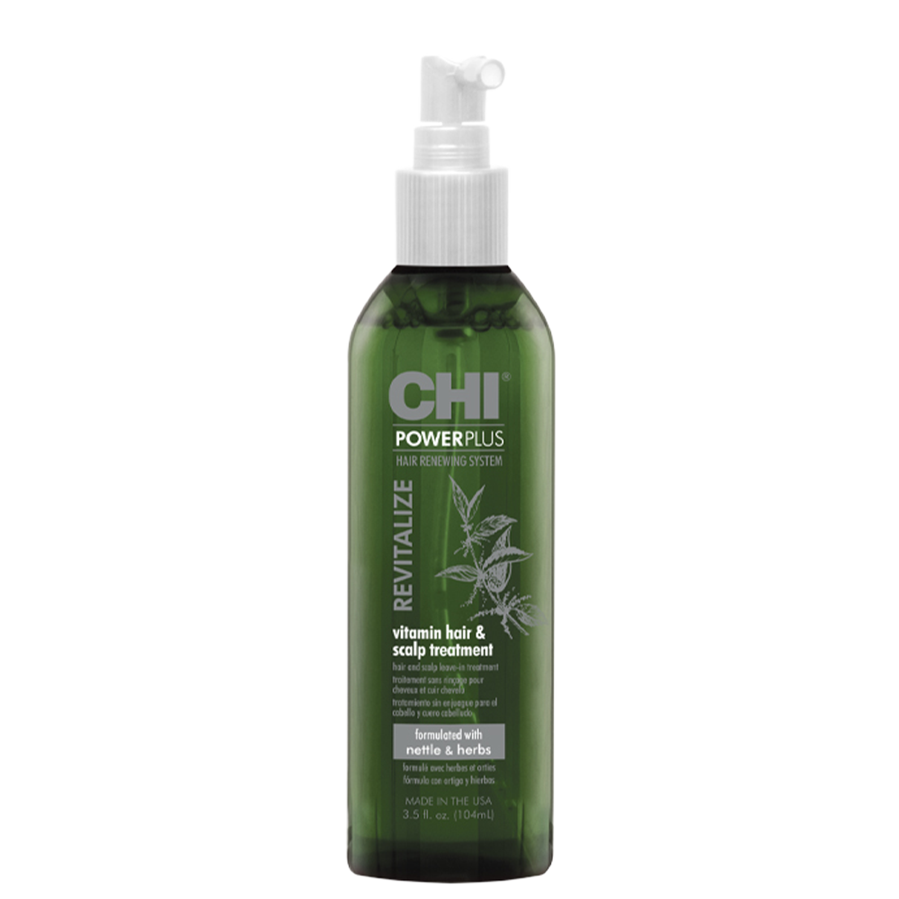 Ревитализиращ серум с витамини за коса и скалп CHI Power Plus Revitalize Vitamin Hair & Scalp Treatment е интензивна грижа, която подпомага здравословното състояние на скалпа и растежа на косата. Успокоява, освежава и стимулира скалпа, като същевременно поддържа растежа на по-здрава, плътна и гъста коса при мъже и жени. Формула с коприва, червена детелина и растителни екстракти, богати на витамини А, С, D, Е.