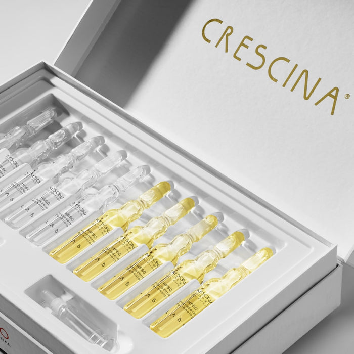 Цялостната терапия за възстановяване растежа на косата и против косопад комбинира Crescina Transdermic Re-Growth HFSC (кехлибарени ампули) и Crescina Transdermic Anti-Hair Loss (прозрачни ампули). Всяка ампула съдържа 3,5 мл от продукта и е подходяща за ежедневен прием с редуване през първите 5 дни от седмицата, следван от 2-дневна почивка. Всяка кутия съдържа 10+10 ампули и стига за 1-месечна употреба, която може да бъде повторена няколко пъти в годината. Препоръчва се употреба поне 2 месеца.