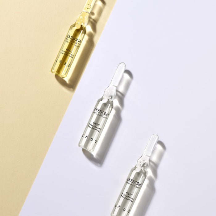Crescina Transdermic Anti-Hair Loss (формула в прозрачна ампула) активно се бори против косопада, като комбинира основните активни съставки (хидроксипролин, аспарагинова киселина, ензимен активатор и таурин) с хидролизиран протеин от мая и ацетил тетрапептид-3, ефективни за укрепването на косата от корена, с 3 подобрителя за улесняване на проникването им. Формулата е обогатена с HSSC комплекс.