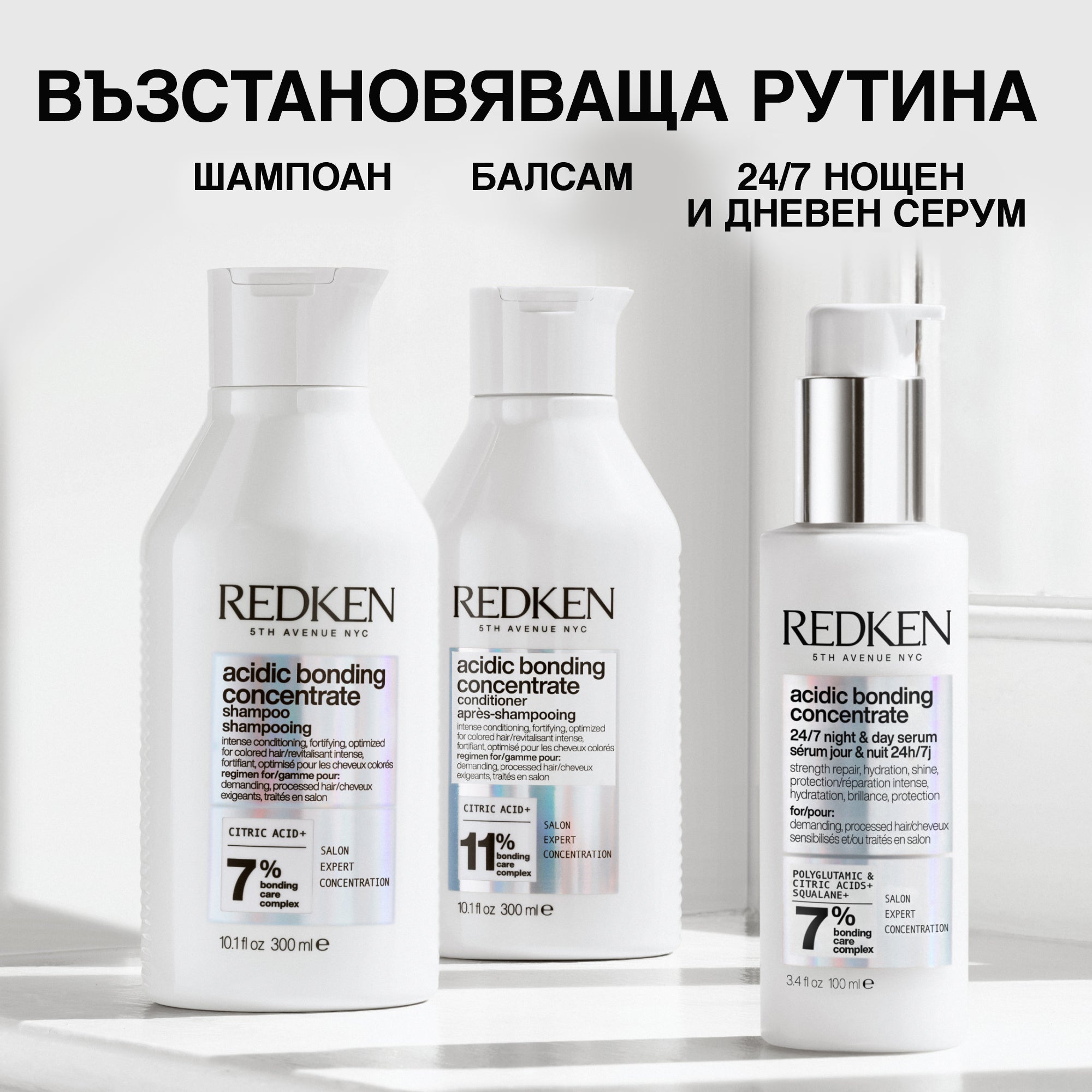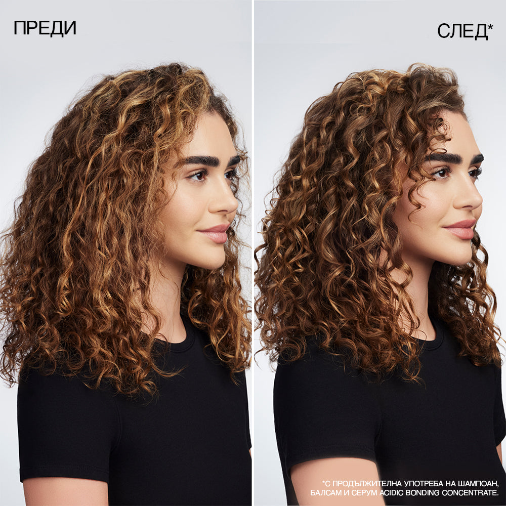 *След продължителна употреба на шампоан, балсам и серум Acidic Bonding Concentrate.