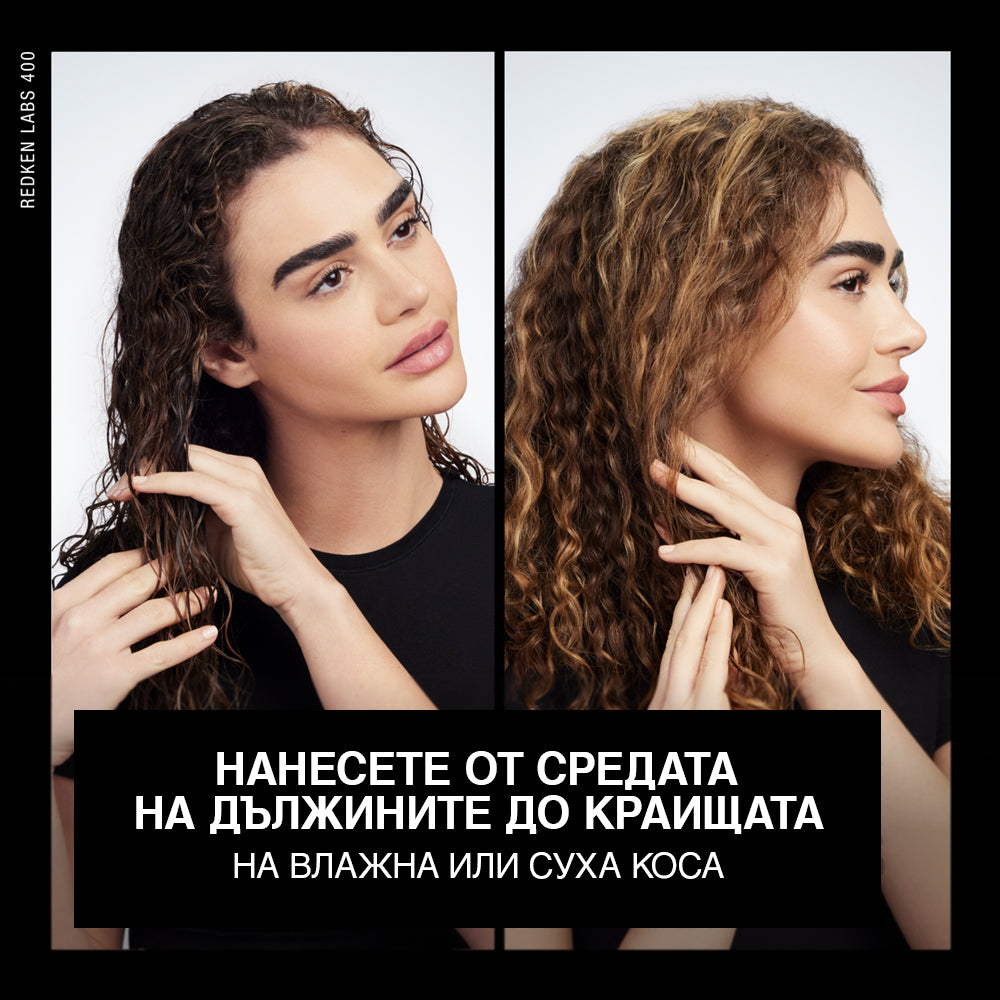 2. Нанесете количество колкото монета върху чиста, суха или влажна коса. Нанесете допълнително продукт при необходимост и желание. Не изплаквайте.