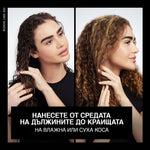 2. Нанесете количество колкото монета върху чиста, суха или влажна коса. Нанесете допълнително продукт при необходимост и желание. Не изплаквайте.