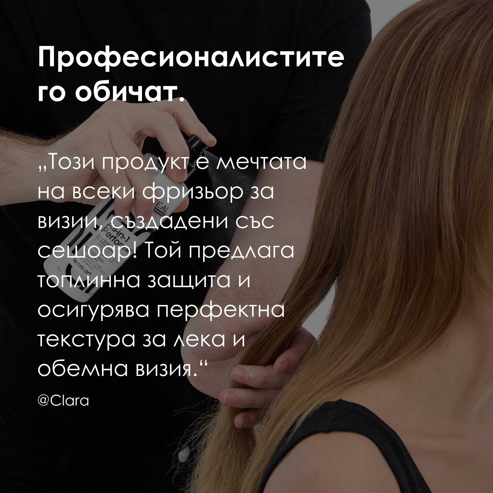 Подхранва, омекотява, хидратира и прави косата лесна за разресване. Действа като праймър, подготвяйки косата за оптимален резултат с всички стайлинг продукти. Защитният филм позволява лесна промяна на визията, без да се налага ново нанасяне. С приятен аромат, който оставя усещане за чистота и свежест.